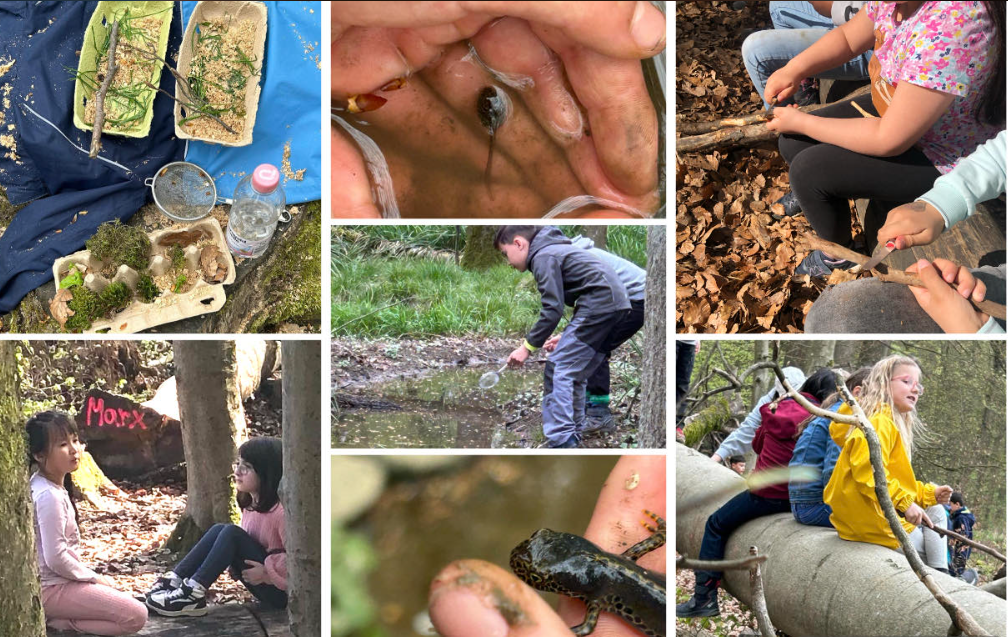 Wald und Wiese ...wir kommen. In der letzten Ferienwoche hatten wir viel Freude und Bewegung in der Natur. Wir waren zwei Tage auf Spurensuche im nahegelegenen Beinhardtswald und dort gab es wirklich Einiges zu entdecken.
