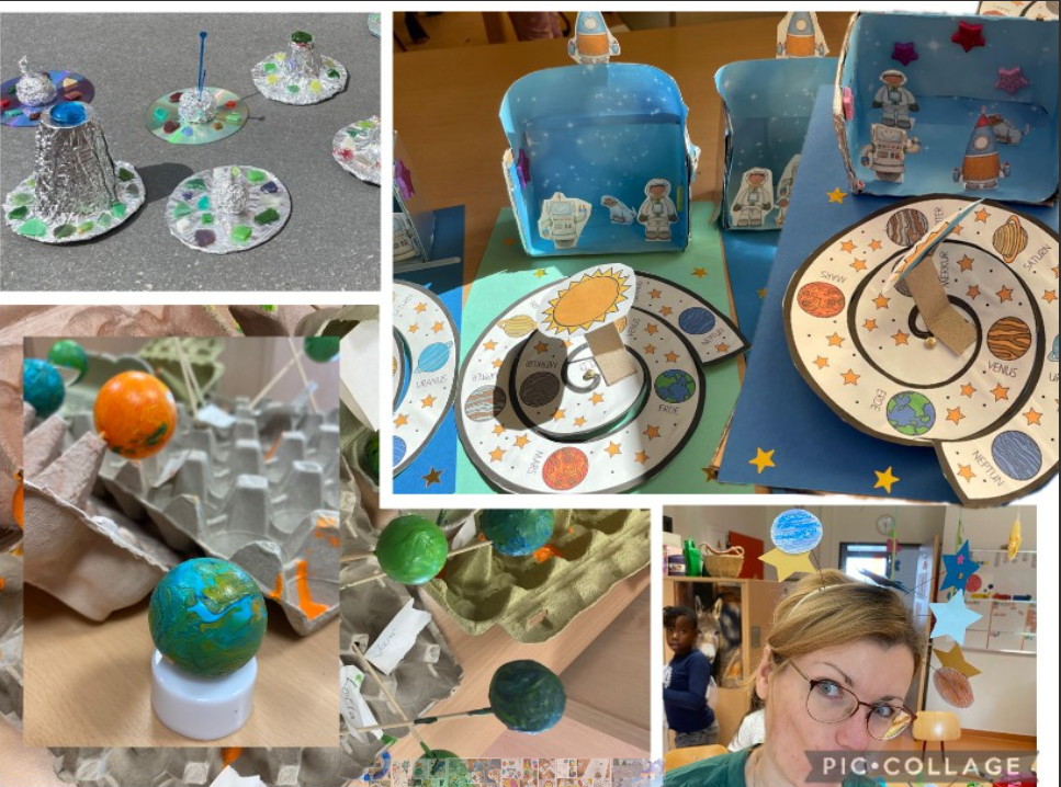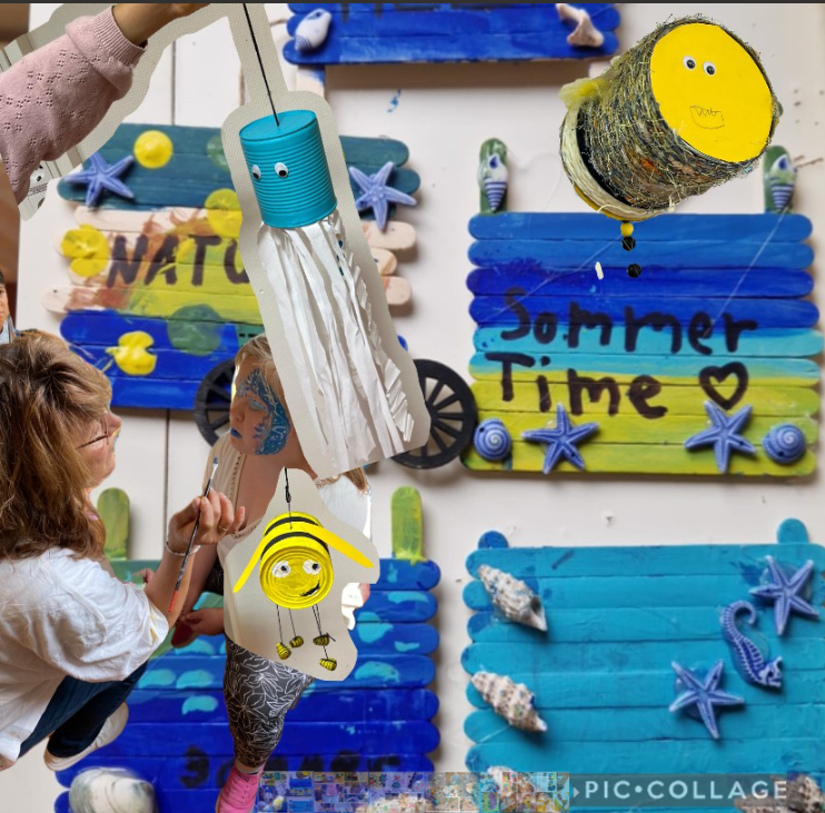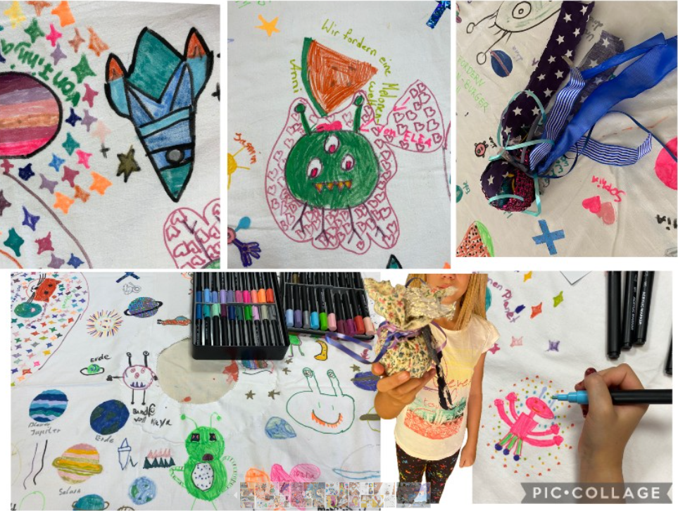 In der ersten Woche ging es los mit dem Thema "rund um das Weltall". Gebastelt wurden kleine Sonnensysteme, Planeten im Schuhkarton, Ufos und Wurfkometen, Planetenschmuck, Haarreifen und Mini-Weltraumlampen. Es wurde gemalt, geschminkt und ausgelassen gespielt. Auch in diesem Jahr durften wir an einem Tag wieder Kinder mit ihren BetreuerInnen der Lebenshilfe bei uns begrüßen. Gemeinsam haben wir wertvolle Zeit miteinander verbracht, gemalt, gespielt und sehr viel Freude geteilt. Danke, dass ihr da wart :-)