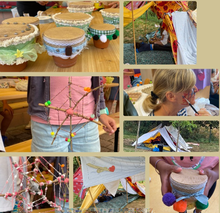 Mit dem Thema "ein Tipidorf entsteht" ging es spannend in die zweite Ferienwoche. In den aus bunten Stoffen entstanden Zelten, wurde vorgelesen, gechillt und die Kinder fanden einen neuen Lieblingsplatz unter den Bäumen mit Rückzugsmöglichkeit im Schatten. Passend zum Wochenthema, wurden Windspiele und Spinnennetze hergestellt, Trommeln gebaut und kreativer Schmuck ist entstanden. Natürlich gab es auch in der zweiten Woche zwei sehr schöne Ausflüge. 30 Kinder konnten bei Red Dragon Wing Tsun in Friedberg wichtige Erfahrung zur Selbstbehauptung sammeln. Das Programm der Familie Weber wurde wie immer mit sehr viel Liebe und Einfühlungsvermögen vorbereitet und wir freuen uns, dieses Angebot immer wieder mal in Anspruch nehmen zu dürfen.