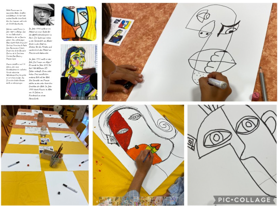 In der dritten Woche hat der Sommer sich etwas vom April abgeschaut und einfach gemacht was er wollte. Die Temperaturen waren nicht unbedingt wie gewünscht und erwartet, aber flexibel und fantasiereich hat unser Betreuungsteam für alle Herausforderungen eine sehr gute Lösung gefunden. Wir haben uns den Sommer, so wie ihn sich jede/r vorstellt einfach gemalt :-) Mit Kreativität, einer kleinen Künstlereinweisung und der Frage "was ist überhaupt Kunst", ging es weiter mit dem Projekt "Malen wie Picasso". Entstanden sind farbenfrohe Kinderkunstwerke, welche nun die Wohnzimmer schmücken dürfen.