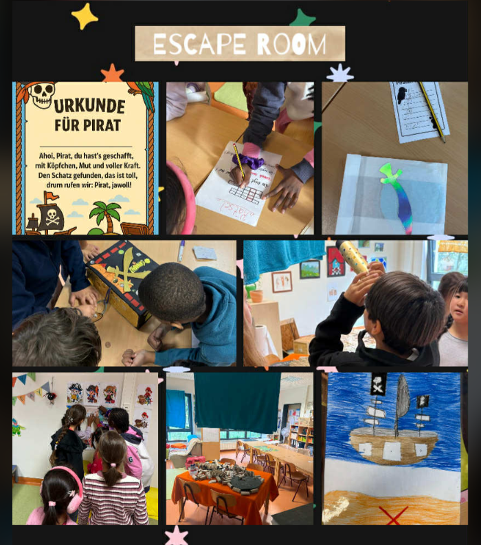 Von Montag bis Freitag, wurde neben anderer kreativer Aktionen, zum ersten Mal ein eigener Escape-Room entwickelt. In Kleingruppen und mit unglaublich großer Begeisterung haben die Kinder sich gegenseitig spannende Rätsel aufgegeben und die Räumlichkeiten in einen richtig coolen Escape-Room verwandelt.